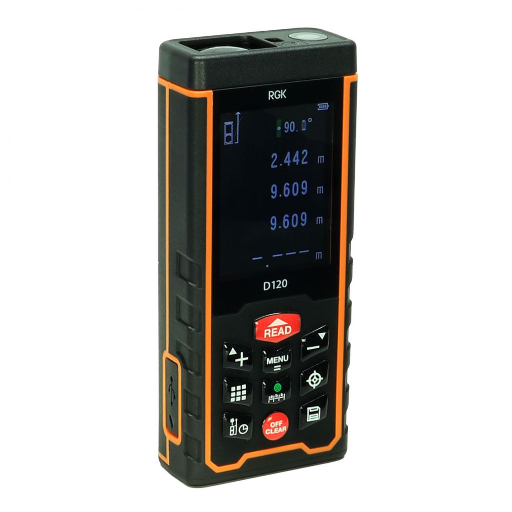 Являясь флагманом линейки дальномеров этого бренда, лазерная рулетка RGK D120 оснащена всеми стандартными функциями: