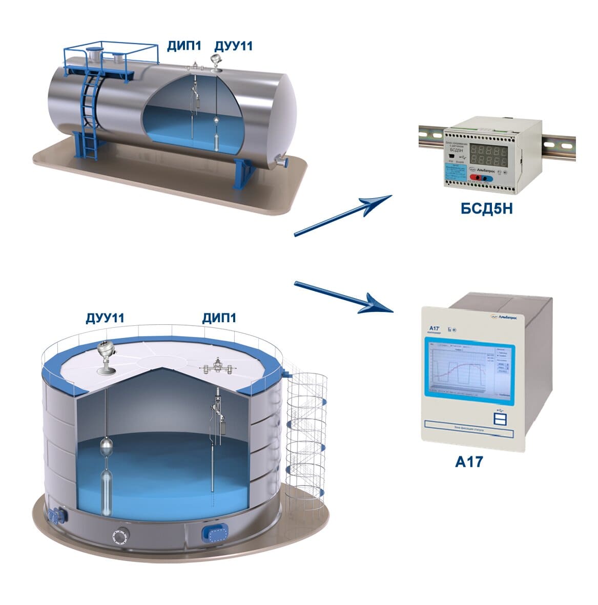 Особенности: при вводе в систему значения плотности в «ручном» режиме, для контроля объемно-массовых параметров продукта необходимо и достаточно произвести установку на емкость одного уровнемера ДУУ11.